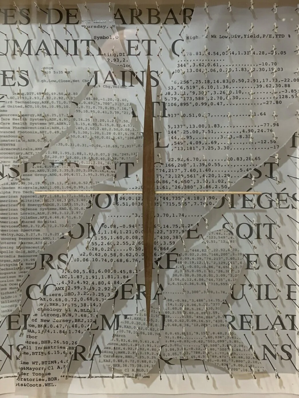 Papier chiffon, aiguilles, plexiglass, bois et aluminium